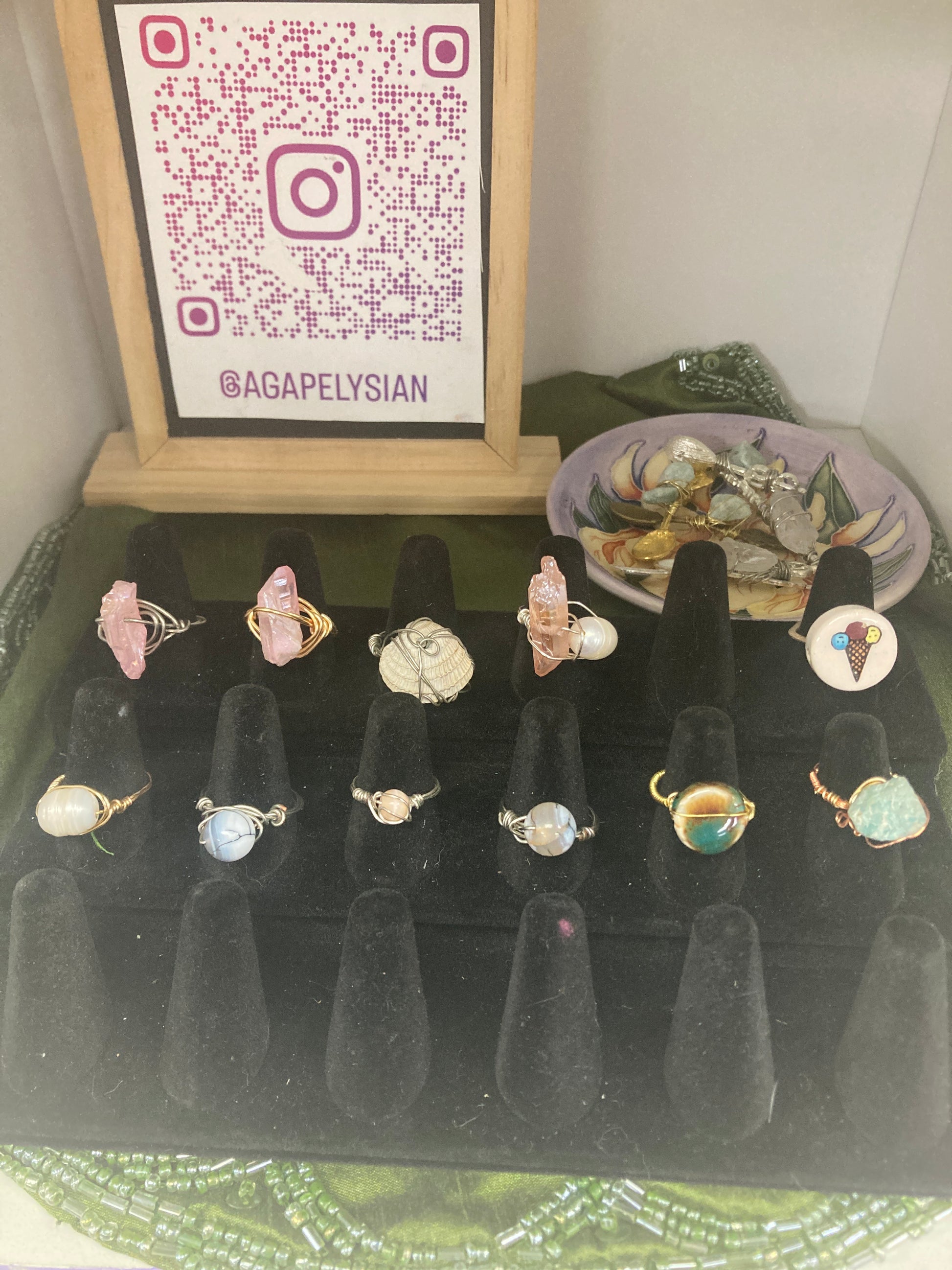 Wire wrapped rings from local vendor Agapelysian